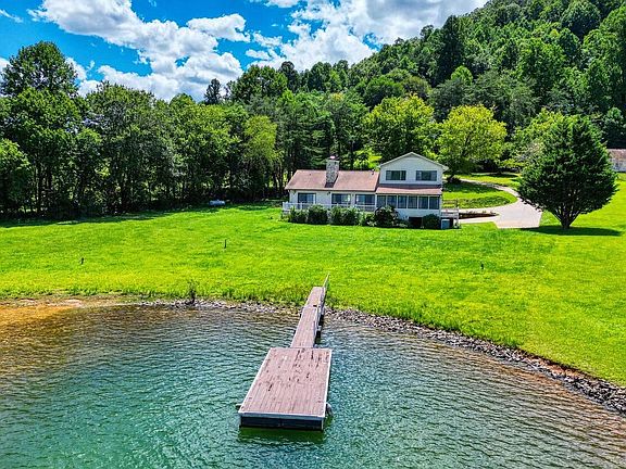 Truly an amazing large 3.22 acre lakefront lot, one of a kind 3BR,2.5 Ba floor plan home and extra 0.53 acre lot with an additional detached garage. These kind of properties and homes don't come along often and the unique floor plan and quality lot features make remodeling a true investment opportunity. Home features Master on main, sun room, lakeside deck, great room with masonary & rock fireplace, spacious kitchen with Island, den/media area & ground level attached garage as well as an additional large detached garage. This lot sports an almost level, large lakeside lawn, end of road privacy, lakeside deck, dock and sweet combination of lake and mountain views.