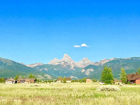 A modest home with an open floor plan on one level and a million dollar view! With homes in the neighborhood selling at a significantly higher price point, this property is ready for the savvy buyer who appreciates its full potential. Enjoy 3 bedrooms & 2 full baths, comfortable & efficient hydronic in-floor heat, a master bedroom walk-in closet, attached 2 car garage & a concrete back patio for sunsets BBQs. The 1.27 acre property is tucked back in the quiet west side of the neighborhood with larger parcels to the immediate west. Saddlehorn Ranch is a laid-back subdivision with light CCRs convenient to Ski Hill road & 10 mins to Driggs with a great mix of year round & 2nd home residents. Come tour the most affordable home in the Teton view corridor.