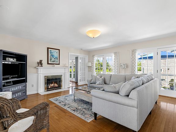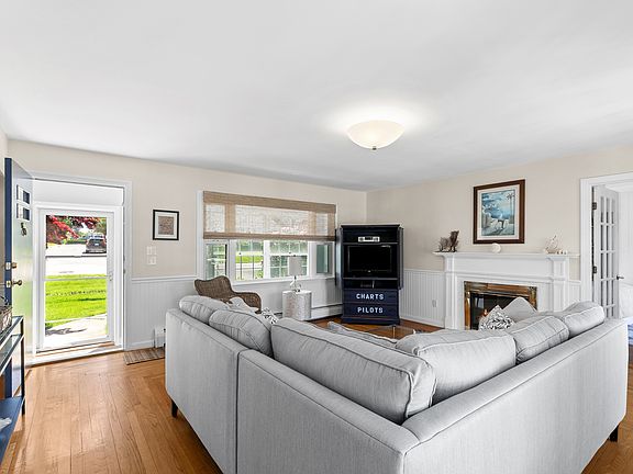 Charming one-story home located in Easton's Point. This bright and airy, three-bedroom home features an updated kitchen and bathroom fixtures along with hardwood floors throughout, a gas fireplace, and coastal furnishings. The main ensuite features sliders leading out to the deck, a walk-in closet, a shower in the bathroom, and a king-size bed. There is a twin trundle bed in the third bedroom and a queen-sized bed in the second. A renovated bathroom with a jacuzzi tub is shared by both rooms. There are sliders in the living room, kitchen, and master bedroom that open to a stunning mahogany deck complete with a grill and dining area. Enjoy two designated off-street parking spaces. A well-behaved dog is welcome with the owner's approval. Please, no cats.