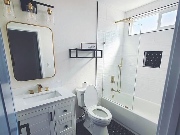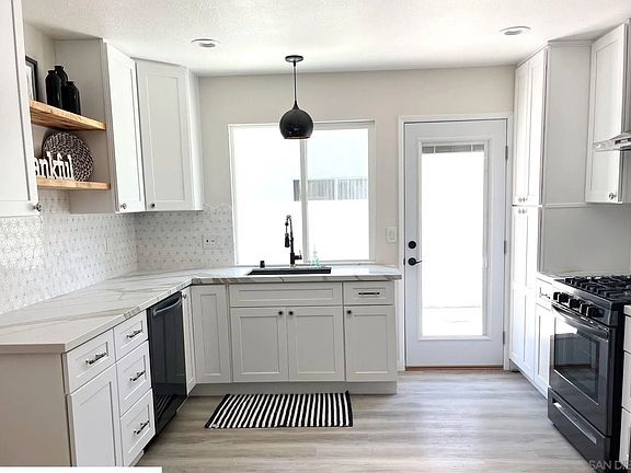 Welcome to this meticulously renovated 3-bedroom, one bathroom home in Oceanside, CA. Spanning 1034 square feet, this residence showcases exceptional craftsmanship and attention to detail. The kitchen features custom quartz countertops and beautiful tile work, while the custom shower boasts a relaxing rainfall showerhead. With a brand-new roof, scratch-resistant and waterproof flooring, and new windows, this home offers both style and durability. The master bedroom opens to a stunning patio, perfect for outdoor entertaining, and overlooks a freshly turfed yard, ensuring a green lawn all year round. A mature fruit tree graces the front of the property, adding a touch of nature. Located near Libby Elementary and Libby Park, this home offers convenience and access to recreational amenities. Don't miss the opportunity to call this Oceanside gem your own.