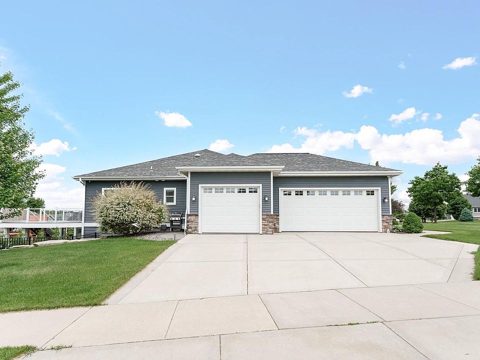 Beautiful ranch home in the desirable Rivers Turn neighborhood! Sitting on nearly a half-acre & ideally located near parks, golf, & Yahara River Trail. 3-car heated garage with ceiling fan has stairs to basement & a large mud/laundry room as you enter the home. The custom craftsmanship shows throughout with hand scraped wood floors, tray ceilings, & primary suite with large fully tiled walk-in shower. Listen to the birds on the large deck overlooking the backyard. Cozy family room with wet bar in lower level is perfect for snacks & a movie night or a game-day party. Lower level has walkout to fenced yard, full bath, 4th bedroom, bonus rooms (workout/office/etc.), concrete storm shelter, custom shelving, & convenient storage room with direct access to backyard.