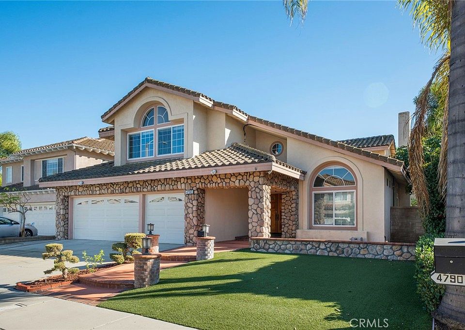 This impressive Collection Plan Three floor plan features 4 bedrooms, 3.5 baths, plus a main-level office (or optional 5th bedroom). A grand double-door entry welcomes you to soaring two-story ceilings and an open, light-filled floor plan accented by canopy windows. The formal living room with fireplace flows seamlessly into a bright dining area overlooking the backyard. bFresh two-tone interior paint and brand-new wide-plank vinyl flooring on the main level enhance the home’s modern aesthetic. The spacious separate family room offers recessed lighting and a second custom-finished fireplace. The upgraded chef’s kitchen features new quartz countertops, a center island, recessed lighting, and stainless-steel appliances - including refrigerator, gourmet range with hood, and dishwasher. Additional main level features include the sunny daily dining area and an oversized interior laundry room (the largest of all Sorrento models) offering abundant cabinetry, brand new quartz counter with sink, and direct access to the side yard. Luxurious Primary Suite & Spacious Bedrooms: Upstairs, the private primary suite welcomes you through double doors into a retreat with volume ceilings, plantation shutters, and elegant window design. This suite includes a large walk-in closet and a spa-inspired bath featuring a spa tub, separate shower with new glass surround, and granite countertops with dual wash basins. The secondary bedrooms are generously sized. One is an additional suite with private bath, and the other two are highlighted with vaulted ceilings and large patterned windows. Additional highlights include dual-zone central air and heating systems, raised-panel interior doors, and softly rounded wall corners throughout. Outdoor Living: The spacious backyard is freshly landscaped and designed for entertaining with a covered patio and low-maintenance artificial lawn. The front yard is equally beautiful, with lush landscaping finished with an easy care artificial lawn for great curb appeal. The three-car garage with roll-up doors and windows provides ample parking and storage space. Prime Location & Community: Nestled in the desirable Sorrento community, this home is just a short walk to award-winning Cypress schools including Oxford Academy (testing required), Landell Elementary, Arnold Elementary, and Lexington Junior High. Blending modern upgrades with timeless elegance, this home truly embodies the best of comfort, style, and location.
