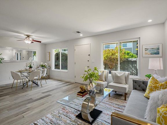 Welcome to this adorable Strawberry Square home that has just been remodeled for you! This little gem has a popular floor plan and is in an ideal location. Beautiful new flooring with thoughtfully selected complementary wall colors create an attractive ambience. New vanities, toilets, mirrors and lighting in the bathrooms, new recessed lighting in the living room and primary bedroom, and brand new kitchen range. Primary bedroom's balcony overlooks the serene patio below. Central heating and air conditioning, laundry service in the garage. Additional uncovered parking space adjacent to the garage. Wonderful amenities include a swimming pool & spa, clubhouse, tennis courts, and multiple tot lots. Walk to the Strawberry Park Shopping Center, featuring Mitsuwa Marketplace and a variety of restaurants and bakeries. Just minutes to freeway 280 and Lawrence Expwy. To top it off, this lovely home falls within the much sought-after Cupertino school district. Absolutely not to be missed!