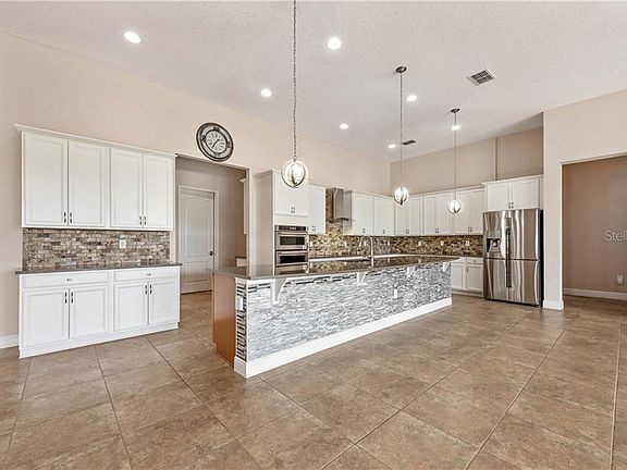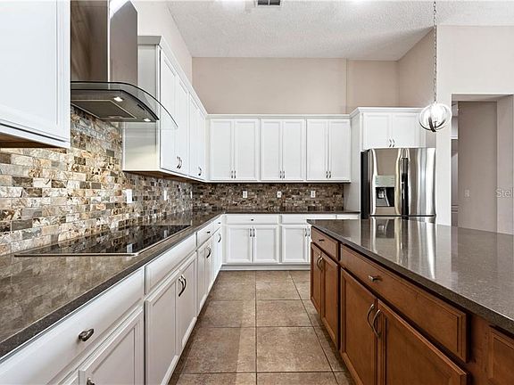 One or more photo(s) has been virtually staged. MUST SEE in Rummell Downs! Everything you are looking for in a home with elegance and space to spare! An OVERSIZED LOT, extensive PAVER DRIVEWAY, 3 CAR GARAGE and TROPICAL LANDSCAPING provide lovely CURB APPEAL and welcome you HOME! Step inside into the bright FOYER with a COFFERED CEILING and start your journey into your new home. Off the foyer you will find a private flexible DEN/STUDY space perfect for a home office or FIFTH BEDROOM! Continuing on you will step into a spectacular OPEN CONCEPT kitchen, living and dining showcasing TILE FLOORS, HIGH CEILINGS and a WALL OF SLIDING GLASS DOORS that open to the massive SCREENED IN PORCH complete with an OUTDOOR KITCHEN! The family chef will immediately fall in the love with stunning KITCHEN boasting endless 42"CABINETS, upgraded STAINLESS STEEL APPLIANCES including BUILT IN WALL OVEN, CUSTOM TILE BACKSPLASH and STONE COUNTERS! The LARGE CENTER ISLAND features CONTRASTING CABINETS, CUSTOM GLASS TILE FRONT and BREAKFAST BAR SEATING for at least SIX! This dazzling kitchen also offers RECESSED and PENDANT LIGHTING. The grand LIVING and DINING ROOM are wide open to the kitchen with plenty of space for the whole family, superb LIGHT FIXTURES along with an abundance of NATURAL LIGHT shining in through the many windows. An ideal DOWNSTAIRS MASTER SUITE will easily become your escape at the end of a long day highlighted by WOOD FLOORS, COFFERED CEILING, a wonderful FEATURE WALL, TWO WALK IN CLOSETS and a generous MASTER BATH with a DUAL SINK VANITY, GRANITE COUNTERS, ample storage and an OVERSIZED WALK IN GLASS ENCLOSED SHOWER with BENCH SEATING! Two secondary bedrooms and a FULL BATH on the first floor only adds the appeal of this home! Upstairs you have a spacious and bright BONUS ROOM/PERFECT 4TH BEDROOM with a THIRD FULL BATH! Step outside and be transported into your own personal FULLY FENCED BACKYARD OASIS, starting in the SCREENED IN PATIO with and thoughtfully planned OUTDOOR KITCHEN, continuing out to the PAVER PATIO and COVERED WALKWAY all the way out and through the expansive BACKYARD full of a variety of LANDSCAPING and FRUIT TREES. **ZONED FOR sought-after A-RATED SCHOOLS** and tucked away in the established Rummell Downs community right off Narcoossee Rd with NO REAR NEIGHBORS and easy access to LAKE RUNNYMEDE and EAST LAKE TOHO. Conveniently located just minutes from Kissimmee Lakefront Park, a plethora of LAKES and PARKS, SR 528, OIA, LAKE NONA, shopping, dining and so much more! Don't wait to fall in love with this well-designed DREAM HOME today! **Tour this property virtually on Zillow!**