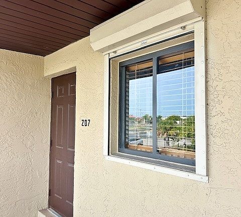 Screened in balconyFresh interior paintWell-appointed condoOverlooking the courtyard viewNewer water heaterAccordion-style storm shuttersSliding barn door