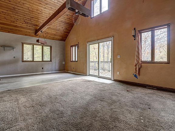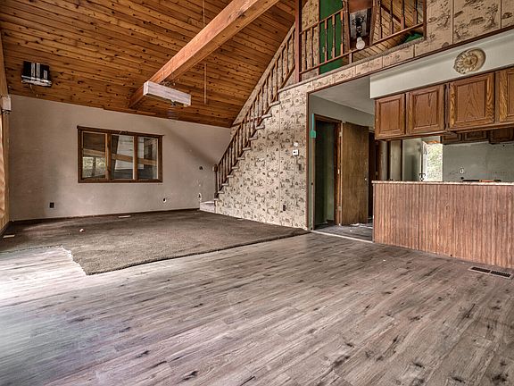 Nestled on 2 acres of wooded land, this fixer-upper offers a blend of rustic tranquility and great floorplan, being just minutes away from the highway. The main floor features a bedroom and a full bathroom, with an open-concept kitchen and living room. A spacious loft upstairs provides ample room for a second bedroom or a creative living area. The lower level walkout includes a finished bedroom, with plumbing in place for an additional bathroom and living space. Outside, you'll find a massive barn, ideal for storage, workshop space, or even conversion for other uses. This property is as-is. All personal property to be left at property.