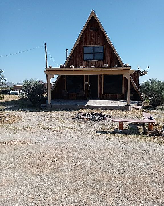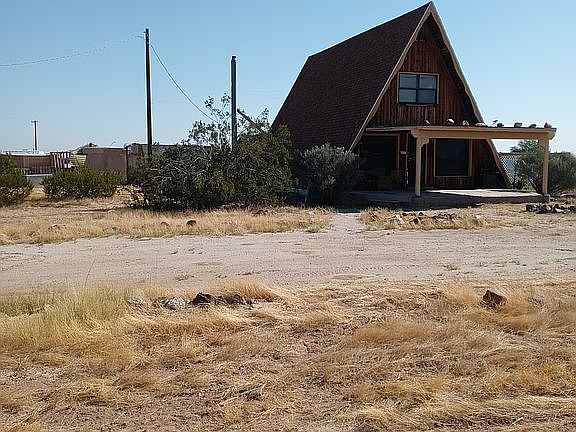 One-of-a-kind property searching for a new owner! This custom A-frame home is located on a 3.3-acre corner lot in the fantastic Hidden Valley Estates! Enjoy the tranquility of the desert and the incredible mountain views. Upon entering the home, you'll see a carpeted great room with a dry/wine bar. The kitchen has a lovely stove, cabinetry space, and wood counters. Continue into the family room with a fireplace for those cool winter evenings. Adjacent to the family room, you'll find formal dining, a bonus/game room, and a bedroom downstairs. You'll love the spiral staircase leading to the two bedrooms upstairs. Outside, you'll discover a covered patio, a Ramada, a small animal enclosure, and plenty of room for horses & toys. Stop searching and start calling to book a showing!