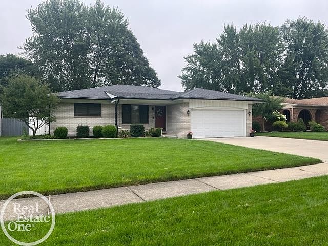 Well maintained Macomb ranch. Extra wide newer driveway, unique covered front porch, 3-dimensional shingles, full brick exterior, aluminum trim, white vinyl fenced in private backyard w/patio, very open, formal living room, huge kitchen and dining area, leads to large/wide family room w/brick fireplace, 1st floor laundry off of the garage w/front load washer/dryer, oak laminate cabinets w/black appliances (stove, fridge, microwave & dishwasher), master bedroom has remodeled bath w/shower stall & newer vanity, main bath is completely remodeled w/dual matching vanities, ceramic tiled tub enclosure, recessed lighting, whole house fan, walk in closets, full basement, shows well and in great area, immediate occupancy.