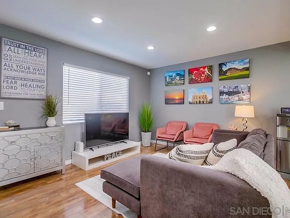 Welcome to this beautifully remodeled home! Step inside and enjoy the open floor plan, where the kitchen seamlessly opens to the living room, creating a bright and inviting space for everyday living and entertaining. Two generously sized bedrooms each feel like a primary suite, with one tucked away for added privacy—ideal for guests, a home office, or a peaceful retreat. The kitchen shines with elegant white shaker cabinets, a custom backsplash, and stainless steel appliances that blend style with functionality. Both the front and backyard have been thoughtfully landscaped, offering beautiful outdoor spaces perfect for gatherings or quiet relaxation. Nestled on a private street, this home combines comfort, style, and convenience in one perfect package. Proper permits have been obtained for the third bedroom and the additional square footage. Extensive renovations have been completed, including but not exhaustive: Installation of central A/C and heating New sewage line running out to the street Fresh exterior paint, including trim and doors Paved side yard and landscaped front yard Blinds installed throughout Added electrical outlets for convenience Security cameras