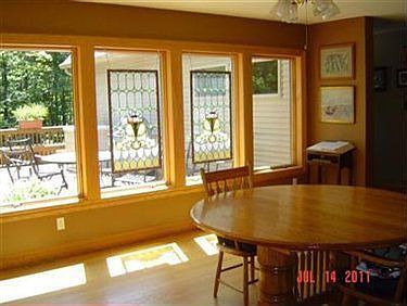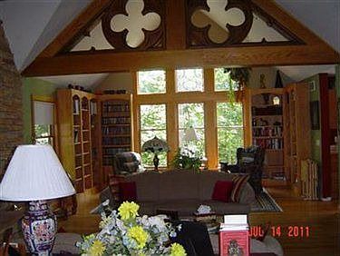 House sits 500' off the road, wooded. A meandering creek runs thru the back. Magnificent views. Home is designed with wide door ways. The decorative great room vaulted features came from a church. Kitchen features 2 dishwashers. Solid wood interior doors. The upper level consists of a full suite including a fully equipped kitchen. A separate staircase leads to a 3rd bedroom plus full bath. The lower level has a room being used as a pool room; another as an exercise room and another finished room could serve many purposes. The lower level is plumbed for 1.5 baths. 3 furnaces serve the home. Lower level rooms are not included in square footage. (approx 705 sq. ft) 2 decks and 4 car garage plus extra unfinished space in the basement allow for plenty of storage. The views are incredible! Stained glass hanging in windows do not stay.
