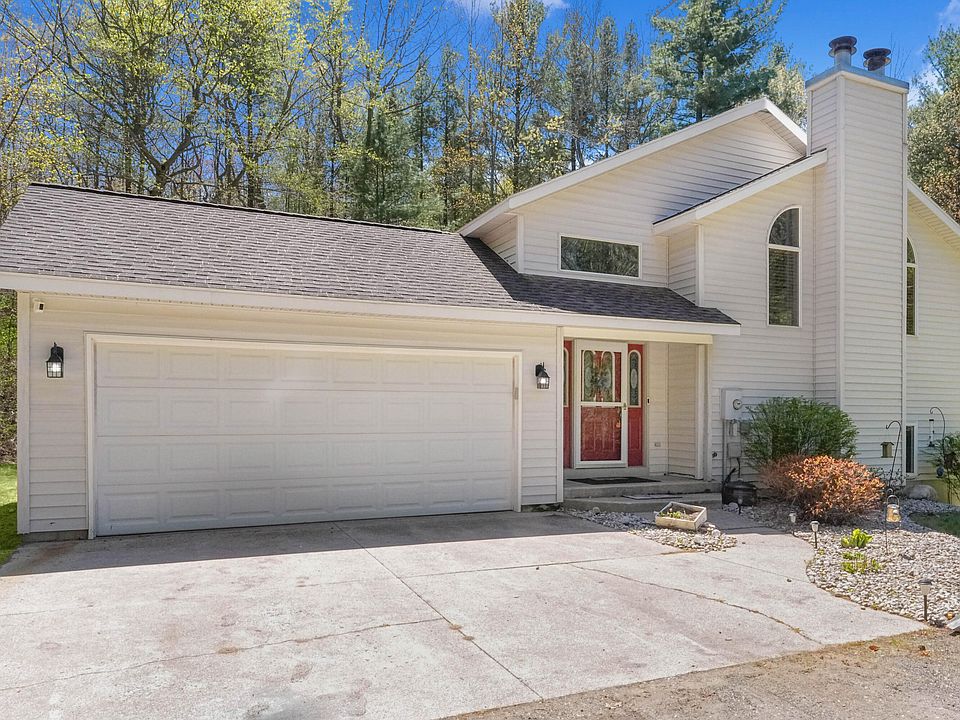 30 minutes from downtown Grand Rapids, this stunning 10-acre wooded property offers the perfect balance of seclusion and convenience. Nestled in a quiet, private neighborhood, this home is your opportunity to embrace peaceful living surrounded by nature. A scenic tree-lined driveway leads you to your personal sanctuary. Upstairs, you'll find a bright, open layout that seamlessly connects the living room, dining area, and kitchen—perfect for entertaining or cozy nights in. The kitchen is a cook's dream, featuring newer Corian countertops, a beautiful marble and ceramic tile backsplash, expansive prep area, and a generous pantry for all your storage needs. Elegant bamboo flooring runs throughout the home, complemented by two gorgeous stone fireplaces that add warmth and character Retreat to your private primary suite, tucked away from the main living area and unwind in a large whirlpool tubperfect after a long day.