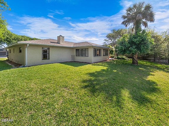 Ponce Inlet gem!! This meticulously maintained 3 bedroom / 2 bathroom one-owner home is located between the azure Atlantic Ocean and the Intracoastal Waterway in the quiet seaside neighborhood of Oceanside Village with no HOA!! Located just two blocks to the pristine ''no drive'' beach access in the quaint seaside community of Ponce Inlet!! This spacious home boasts a desirable light & bright open floor plan featuring a statuesque Coquina stone wood burning fireplace, great room and an inviting Florida room adorned with beautiful plantation shutters. The high and dry manicured oversized lot is elevated 14' above sea level!! Relax on the tranquil back patio under gorgeous mature shade trees and hear the sounds of the waves on the shoreline!! The split bedroom design provides privacy for the owner and guests, and each bedroom is sizable with ample closet space. Completing this coastal haven is an oversized two-car garage for your vehicles & beach essentials along with attic storage. New HVAC system in 2023, hot water heater is 8 years young, roof is in good condition & septic tank pumped & checked in 2022. Walk or bike to the beach every day, seaside restaurants, parks, historic Ponce Inlet Lighthouse, Marine Science Center, marinas, charter fishing, and a myriad of water sports!! Enjoy a life of coastal splendor!!