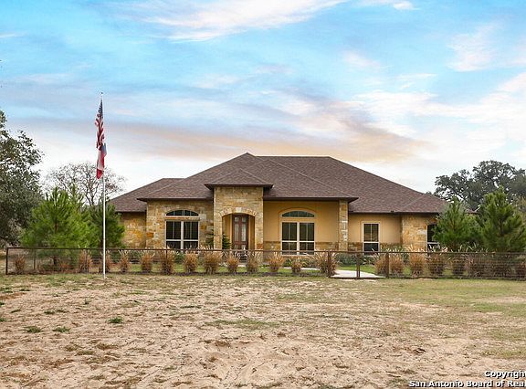 Stunning ranch home on 26.93 acres with openness, plenty of natural lightening, custom cabinetry and kitchen countertops! Front & backyard landscaped and individually fenced. Property is rectangular-shaped with home in the back left corner, electric fence with nice set back into the property allowing your truck pulling a trailer not to block the road, cross-fenced for live stock, provides storage shed, metal cover/stalls, separate concrete pad with utilities (prior RV parking), fenced in areas for your green thumb, separate dog run, covered RV/boat/tractor storage and the home is not directly visible from the road allowing an extensive level of privacy on slight rolling hills with serene giant oak tree views.