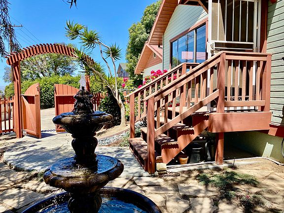 In one of the most desirable neighborhoods sits a charming single story home, tucked away on a 20,000+ sq ft lot. Built in 1996 and updated in 2006, the open floor plan consists of a large living room and dining room with a glimpse of the islands. The kitchen has custom tiling and stainless steel appliances. The master bedroom with office, is bright, has loads of closet space and full bathroom with large tub and walk in shower. An additional bedroom and full bathroom is just down the hall. The 6 ft walkable attic has many possibilities. Step out to your Oasis!. This backyard is tranquil and inviting. Take advantage of the nature surrounding you. A wonderful area for BBQing, dip in the hot tub, or walks on the hillside, while enjoying the wildlife, sounds of cows grazing on the hillside, or picking limes, kumquats or avocados . Tankless water heater, 2 car garage and a minimum of 4 cars with possible RV parking through your electric gate. Ventura Living at it's best!