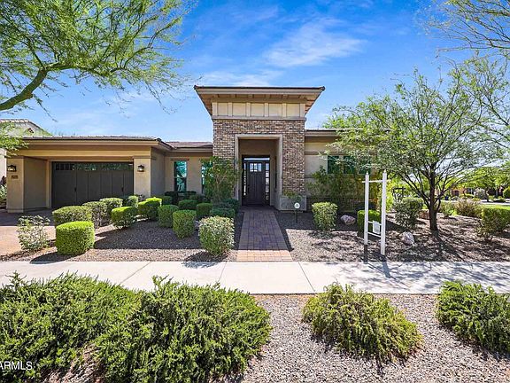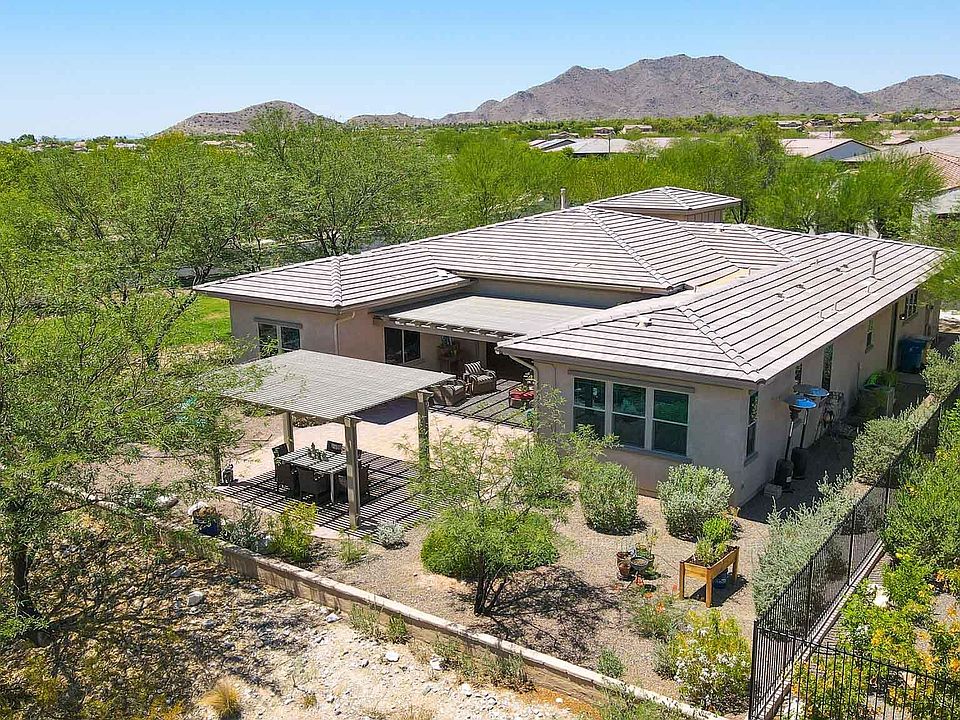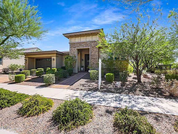 VIEWS and open space on a gorgeous corner lot. This ENTERTAINER floor plan by Maracay w/expanded master bedroom includes over $100,000 in tasteful upgrades options/updates: Kitchen includes Timberlake Portfolio Sonoma cherry cabinets w/chocolate glaze w/boxed fridge, Grp 3 Quartz Vegas top bevel countertops, Bosch dishwasher, double-ovens plus comfort height microwave; expanded walk-in shower in master bathroom, cabinets and granite counters in laundry room; and hobby room/casita. 3 center-pull sliding doors leads you to the extended rear patio, including fireplace, two pergolas, an additional patio, which gives several areas of retreat with beautiful TRAIL views from the $30K professionally designed backyard. But wait... there's more... Enjoy the 55+ lifestyle at Victory at Verrado!!!