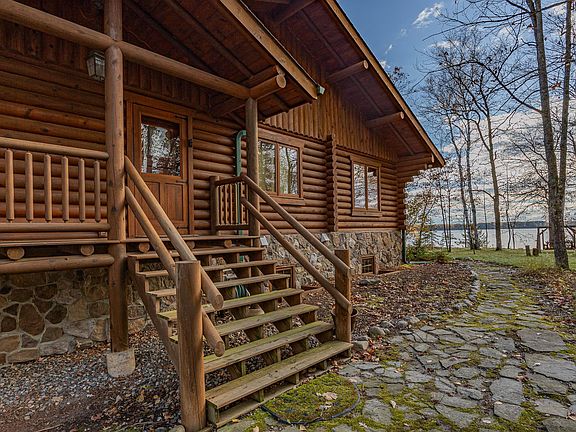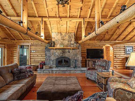 This stunning 5240 sq. ft. log home on Man Lake has everything you want. With 261’ of pristine shoreline and 2.28 acres of secluded land, you'll enjoy unparalleled privacy and natural beauty, including access to the adjacent Chippewa National Forest. Walls of windows bring the beauty of nature indoors, while the whole log construction and vaulted ceilings accented with full beams create an inviting atmosphere. The wide plank wood floors with square-cut vintage nails add character to the room, giving it a timeless, classic look. The stone, wood-burning fireplace provides a warm ambiance. Relax in the 2-season porch with space for lounging and dining. The adjacent deck makes grilling for guests a breeze. The LL walkout is just as impressive, with a stone gas fireplace, heated floors, and a dry bar that could easily be converted to a wet bar. The deep, detached 3-car garage provides room for vehicles/toys. A turn-key opportunity/all home furnishings and recreational toys available.