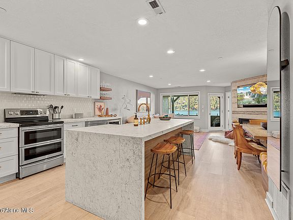 Ground floor 3 bedroom Arrow Point condo with a high end remodel. Great views of Lake Coeur d'Alene, easy ground floor access. Marble tile primary walk in shower, Waterworks plumbing fixtures, waterfall style breakfast bar, built in wine cooler, stacked washer and dryer. Ready for immediate occupancy, bring your toothbrush! Sold fully furnished.