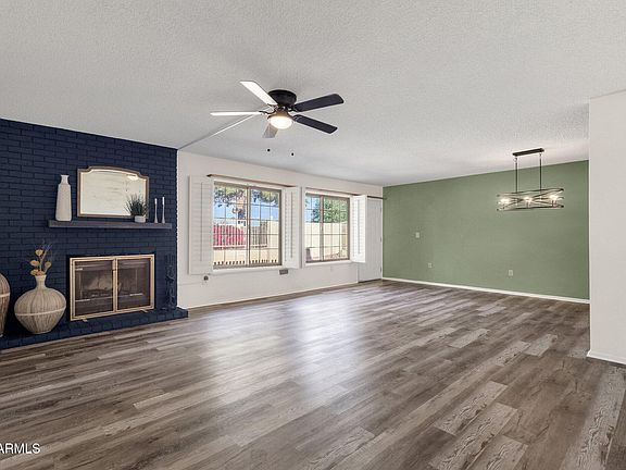HOME IS PRICED BELOW RECENT APPRAISED VALUE! Welcome to this beautifully updated 2-bedroom, 2-bathroom home nestled in 55+ community, Ahwatukee neighborhood. Step inside to find a bright and airy living space with brand-new luxury vinyl flooring throughout the living room, dining room, kitchen, and both bathrooms. Freshly painted walls, updated light fixtures, wood burning fireplace, and stylish new mirrors and towel bars add a modern touch to the entire home. The spacious kitchen has been updated with all-new stainless steel appliances, a stunning tile backsplash, and freshly painted cabinetry. Whether you're cooking a gourmet meal or enjoying a quick breakfast at the breakfast bar, this kitchen offers both style and functionality. The open floor plan seamlessly flows into the dining area, which is illuminated by updated light fixtures, making it the perfect space for entertaining or daily living. Every detail has been considered, creating a fresh and inviting atmosphere. The master bedroom is generously sized, with ample closet space and plenty of natural light. The second bedroom is perfect for guests, a home office, or any other need you may have. For added convenience, the HVAC system and water heater was replaced in 2021, ensuring year-round comfort. Step outside to your private backyard oasis, where you can relax or entertain on the extended patio with view fencing overlooking a peaceful greenbelt. The serene setting is perfect for enjoying the Arizona weather, whether you're sipping your morning coffee or hosting a small gathering. As part of the community, you'll have access to fantastic amenities, including a clubhouse/rec room, community pool and spa, golf course, fitness center, and pickleball courts. Enjoy an active and social lifestyle just steps from your front door. The HOA takes care of the roof, and exterior maintenance is a breeze, leaving you more time to enjoy the amenities or relax in your new home. This home is truly move-in ready, with all the updates and features you could want for easy living. Don't miss out on the opportunity to make this stunning patio home your own!