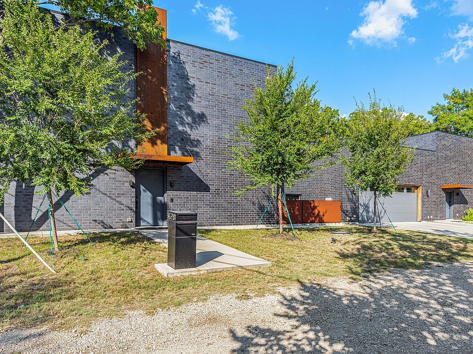 This modern take on a European walled compound knocks it out of the ballpark. Completed in 2021, the home was inspired by vacations in Spain but realized as a modern design featuring commercial quality materials, including an oversized Acme Iron-spot brick and artisan steelwork. Located on .445 acres, the “compound” features 3 separate living spaces, the 3 bedroom, 3.5 bath main house + the attached 2 story apartment + the 1260 sq ft detached 2 bedroom, 2 bath guest house. County measurements total everything, including the attached garage, as 5486 sq ft. Each structure is foam insulated. Situated on a cul-de-sac, beyond its gated driveway and fortress-like facade, one is connected immediately to nature. The NE boundary is the wooded Old Trinity River Channel. Designed for multigenerational living, the property is very well suited for creatives who want a live work homebase in separate but connected facilities. There are open living areas with polished concrete floors and tall ceiling rooms flooded with natural light. A covered porch is the perfect place to take in the home’s central “green” and there is a roof top terrace. Appliances include a Dacor 36” stainless-steel refrigerator, freezer, and 24” wine fridge. There are Blue Star double ovens with and a Blue Star 8-burner gas range. Stainless-steel countertops with integrated sinks will please the most discerning chefs! On the 2nd floor of the main home are 3 bedrooms & 3 baths, each with decorator tile. The primary suite has a walk-in double shower with a view of the skyline. The 2-story loft apartment has its own entrance. Detached is a luxurious 2 bedroom guest house with an open living area, full kitchen, 2 custom baths, and a covered porch. MU-1 Zoning allows for multiple uses. Surrounded by live-work residences, galleries and showrooms, the lot size and nature preserve setting make this home a one-of-a-kind.