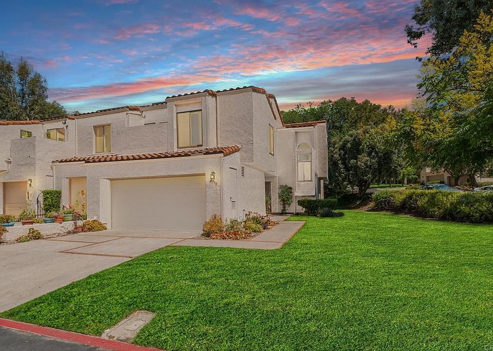 In-demand hilltop community of Villa Dominque View Homes! Beautifully updated 2-bedroom residence with an additional spacious flex room—ideal as a 3rd bedroom, office, playroom, or guest suite. With 2.5 baths, this move-in ready end unit offers a bright open floorplan, soaring vaulted ceilings, French doors, and Brazilian hardwood floors throughout the common areas. The chef’s kitchen features a center island, upgraded abundant cabinetry, and a smartly designed layout that flows seamlessly into the living areas. Bathrooms have been tastefully updated, with the primary suite offering dual closets, a private patio, a floor-level soaking tub, and a completely renovated walk-in shower. Comfort and convenience throughout: carpet in bedrooms, tile in kitchen and baths, ceiling fans, and plenty of natural light. A fully decked attic with ladder provides excellent storage, while the attached garage includes epoxy flooring, built-in storage, and laundry area. Washer, Dryer and Refrigerator included. The Villa Dominque community offers residents a sparkling pool, along with stunning mountain and ocean views from various vantage points throughout the neighborhood. Enjoy a large side yard, plenty of nearby street parking, and access to the Mission Trails Regional Park trailhead just steps from your home. This spacious property blends style, function, and location—ready for its new owner!
