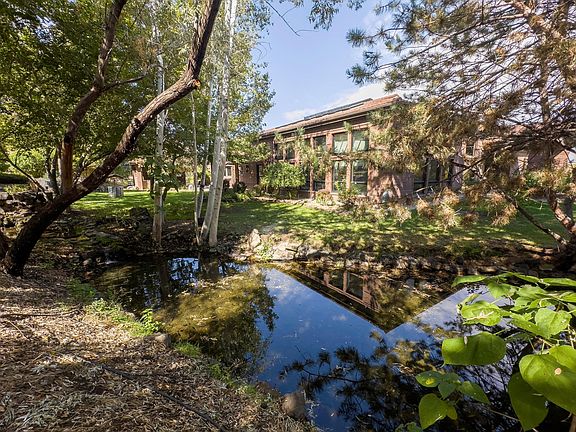 The primary residence sits on the bench of the acreage, surrounded by ponds, and an exterior geothermal pool complements the serenity of the landscaped backyard. The main level of the house was remodeled in 2022, featuring new cabinets, a large living room, a first-level master bedroom with walk-in closets, and a covered patio.