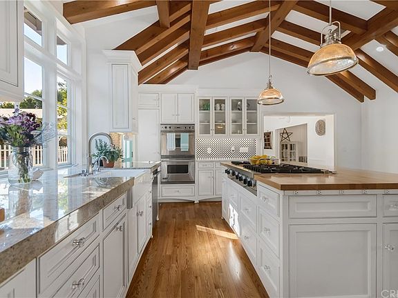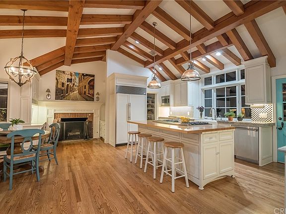 Gated Encino Estate South of the Boulevard Cape Cod style with pool. 4 bed 4 bath situated on 15,681 sqft Enter through a gated brick courtyard & then through an open updated kitchen with Viking professional appliances, high ceilings, central chopping block island with seating, breakfast nook, fireplace, walk-in pantry, and a beautiful view of the pool, large yard. Kitchen flows directly into the large bright dining room with vaulted ceilings and a wall of windows to the backyard. Massive living area with fireplace and reading nook and an additional living area with library & built in bar. The bathroom/laundry room is an ideal mudroom with a door directly to outdoor dining & pool. Upstairs features a large master suite with hardwood floors and a very large walk-in closet, fireplace, attached full bath & craft room. The second master suite is situated next to the master bedroom which features its own full bath double walk-in closets & lots of natural light. Two main floor bedrooms are light & bright. One features a private entrance into one of the large courtyards.The other bedroom features a fireplace. Full bath is situated between the two downstairs bedrooms. The home features a saltwater pool perfect for a relaxing dip & a large private yard including a custom Amish gazebo, outdoor BBQ, outdoor shower & many mature fruit trees. 2 car garage has a large storage room attached. The automated gate adds an additional layer of privacy to this retreat. Property is a MUST SEE