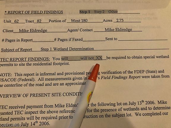 47th Ave NE off Everglades. Previous Tropical Env Survey attached (82% uplands) that states "WILL NOT" require special wetlands permit. HUGE mostly cleared with low palmetto palms and few large Pine. Small wet ditch on front right, small wet patch around middle and on rear lot line. Plenty wide open uplands to build and keep privacy from neighbors. Great quiet street with newer homes. POSSIBLE OWNER FINANCING, see conf remarks.