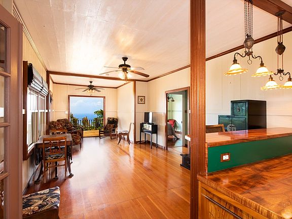 Aloha Kakou. Welcome to this precious 1930's plantation home w/ expansive ocean views & views of famous Waipio Valley - these opportunities do not come often. Enjoy the original hardwood floors, high ceilings, five panel doors, & tropical breezes flowing through charming windows (new but matching the style). The current owners have done wonders to make improvements while keeping the original charm.The home encompasses approx 880sqft under roof including 2 bedrooms, 1 large bathroom, spacious kitchen w/stainless steel appliances, an additional KOA counter space & breakfast bar adjoining the kitchen, koa trim throughout, & three sets of french doors opening up to a large open deck of approx 747sqft, inviting outdoor/indoor living. The master bedroom opens up to the deck & backyard w/ocean views & the large bathroom features custom etched tiling, handicap friendly shower, a custom vanity, & a separate toilet room with pocket door. Below the house, facing the ocean, is a wonderful space to soak in the hot-tub, & underneath the home are the washer/dryer & additional dry storage. At the front of the home is a single carport & the spacious front yard offers additional parking space. All the electrical & plumbing have been replaced by these owners as well. See the furniture and wooden window blinds in the photos? Those are included too!This is arguably some of the best elevation (700ft) along the Hamakua Coast, sunny but cooled by trade winds. Average temp 70+ degrees. Plants thrive at this elevation & already established are avocados, banana, citrus, fragrant flowers, herbs, palms, & more. Adjoining property below & all the way to the ocean is owned by Bishop Estate.Waipio Valley is within walking distance, with incredible hiking, surfing, spinner dolphins, seasonal whales - all with unparalleled beauty. Historic Honokaa town is just a short drive away with a grocery store, shopping, restaurants, schools, parks, & more!