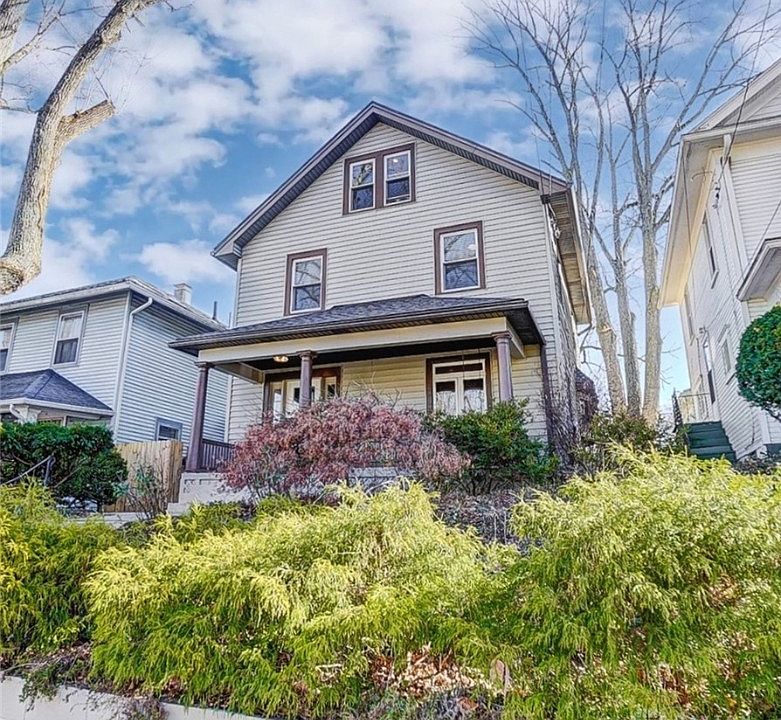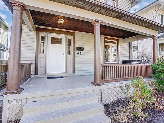This beautiful 1910 home with a touch of both historical and modern craftsmanship boasts original hardwood flooring. The updates on this home are found throughout, from the full basement to the primary bedroom on the third floor. Upon entering the home, the large windows fill the space with natural light, and ceiling lights provide a comfortable living room space. The dining room has high windows and opens to the updated kitchen with Cambria quartz countertops, tile backsplash, tile floor, new stainless steel dishwasher, and microwave. The large area off the back door is perfect as a pantry or mudroom. Continue upstairs with new stairway carpet to the updated full bathroom with custom tile shower, new vanity, and lighting. The second level has 3 bedrooms with original wood flooring. The primary bedroom is on the third level with new carpet and an updated bathroom with a custom walk-in tile shower. This level has a separate portable heating and air conditioner. The full basement provides extended living space with new carpet, tile flooring, and a counter for high-top seating. The utility room and storage area are off the finished basement space. The electrical and interior plumbing had both been completely updated. The backyard provides space for outdoor entertainment with a 1.5-car garage and parking pad. Additional parking is available on the street in front of the home. This modern historical gem is near major area hospitals, the University of Dayton, Oregon District, and downtown events!