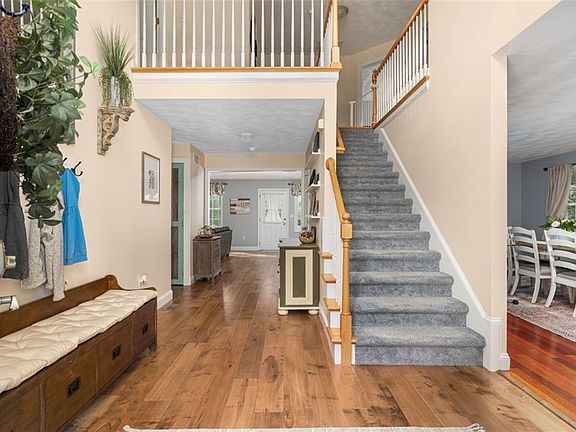 Modern farmhouse-style Colonial set on nearly a half-acre of land. When you enter this home you know it is special. From its dramatic open foyer to the beautiful open floor plan. Stunning hardwood floors are throughout the first floor. There is a large formal dining and living rooms. The granite eat-in kitchen with stainless steel appliances opens right up to the family room with gas fireplace. There is also a wonderful, covered deck right off the kitchen to enjoy the bucolic views in the backyard. The laundry and half-bath complete the first floors. On the second floor is the amazing primary suite has two walk-in closets and a beautifully updated bathroom. Two more large bedrooms and a full bathroom as well as a large bonus room completes this level. The unfinished lower level has a walkout to the large backyard with patio and firepit. This must-see property is close to highway, shopping, trains and much more.