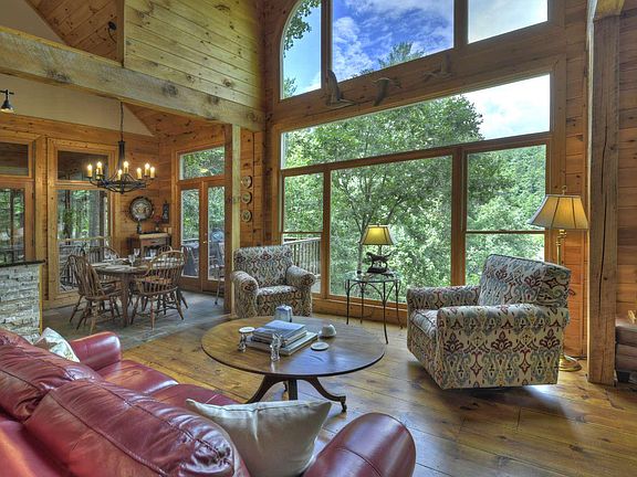 Spectacular RIVER FRONTAGE on the Coosawattee River. Great RIVER VIEW from almost every room as this home sits on a beautiful curve of the river. 3 levels of living. You'll be wow'd as you enter the great room w/massive wall of windows, vaulted ceiling & floor-to-ceiling stack stone fireplace. Super nice kitchen w/high-end SS appliances, custom cabinets, stone backsplash, & pantry. Main floor master, huge marble tile shower & soaking tub. Lg LOFT w/VIEW! Finished terrace level has a 2nd kitchen, family room, 2 BR's & full bath. Outdoor living abounds w/4 porches (including screened porch), hot tub, fire pit, river pavilion, outdoor shower, river deck & steps built to the river. (Home is not in the floodplain) Fantastic potential for vacation rental; yet never been in the rental program. Located in popular river resort, 15 min. from Ellijay, amenities galore! (Tennis, fitness, 3 pools, river parks, & more)