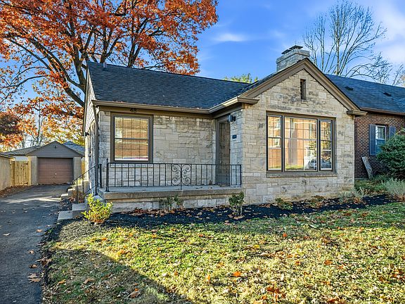 Bedford Stone Beauty is remodeled and turn-key ready for you! 2 bedroom/1 bath cottage-style bungalow has elegant curb appeal and features brand new kitchen: cabinetry, new appliances, butcher block countertops, etc. Don't miss the beautiful herringbone, ceramic-tile flooring in the kitchen/dining area...so pretty. Brand new "to the studs" bathroom renovation is light and bright. Throughout home you will find professionally refinished (original) hardwood floors, new paint and lighting. Spacious living room boasts cozy fireplace. Quality built home is 1131 SF upstairs with additional 819 SF unfinished basement. Basement could be future family/rec room, home office or 3rd bedroom...you choose! Basement features new water heater and updated 100 AMP electrical service. Seller-paid home warranty available. Outside, you will love the new privacy fence...perfect for quiet relaxation and entertaining and the 1-car detached garage...plenty of driveway parking too. Conveniently located between desirable Irvington neighborhood with restaurants, library, coffee shops and more and minutes to downtown Indy! Just outside the front door you can enjoy nature as you walk, bike or run at Pleasant Run Trail and Greenspace!