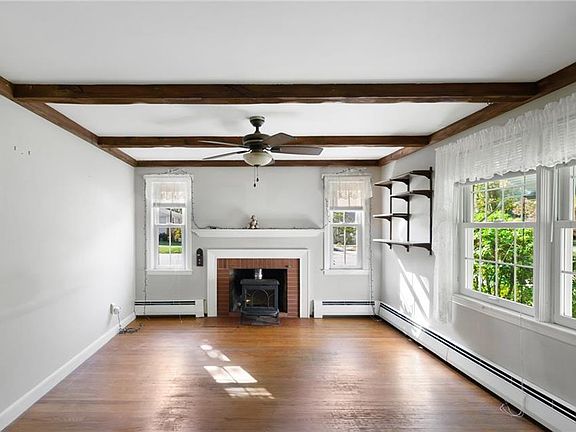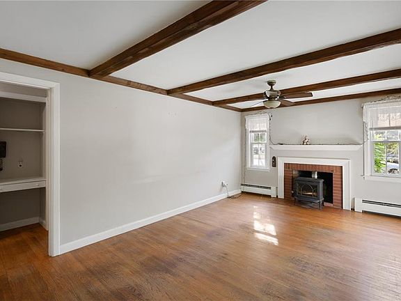 The perfect ranch, in the perfect location. 2 Bedroom 1 bath ranch home on a dead end street with a corner lot. This home features a fully functional fireplace/woodstove, hardwood floors, a 3 season room right off the kitchen and an updated bathroom. This home features a newer roof with a transferable lifetime warranty, new Anderson windows with a transferable warranty, worry free vinyl siding and a 3 month old boiler. The yard is fully fenced in with a large shed and wonderful gardens offering quiet and privacy, still close and convenient to everything. This home is connected to water and sewer with no assesments...just a few touches and updates to really make this house your home