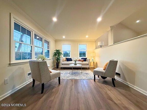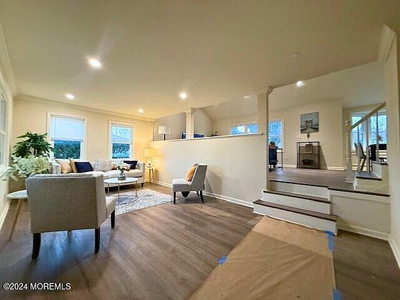 New Renovation. This expanded colonial offers more than 2,100 sq ft of living space. Interior offers an open layout and solid plank flooring throughout. All new windows let natural light pour in. Featuring a living room, great room, dining room, large kitchen with 42' cabinetry and center island. First floor bedroom/playroom, laundry and half bath complete the first level. Upstairs, the primary suite has a private bath, walk-in closet and built in vanity/office. New composite deck and large rear yard. Quiet neighborhood offers easy access to routes 35 and 36, GSP, NYC transportation and more.