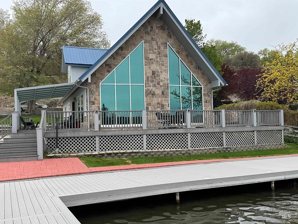 One-of-a-kind home with 150 ft of Snake River frontage. It has an open floor plan with the great room, kitchen, master bedroom with bath plus another bedroom and bath on the main level. The open loft area upstairs is a great family gathering space. You can jet ski, water ski, boat, fish, kayak, and paddle board right out your front door. Beautiful patio and dock to enjoy the wonders of Hagerman. Separate parking for your cars and storage for your toys. This is a MUST SEE and won't last long. Professional pictures will be uploaded next week.