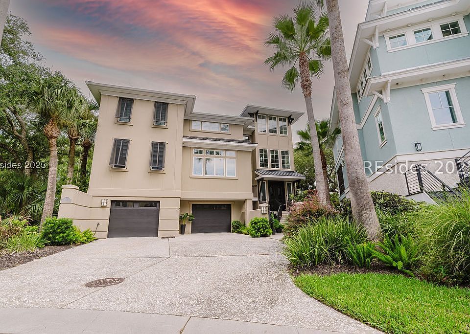 Appraised at 1.6M, find instant equity and the Best sunset views at this deep waterfront coastal dream home in the cozy neighborhood of Bermuda Pointe in Hilton Head Island! Featuring luxurious upgrades and resort-style living with a metropolitan twist, this 2BD/3BA beauty boasts cathedral ceilings, pine wood floors, and floor-to-ceiling windows that flood the living space with natural light. Entertain in style with a separate dining room, redesigned 2024 kitchen with loads of cabinet space, Viking stainless steel appliances, gas stove, and large pantry. The elegant living room features a gas fireplace, wired surround sound, and an exposed 20ft brick wall. Step outside to a private oasis and entertain in style with an infinity pool, outdoor fireplace & BBQ, and uplighting in the surrounding trees. Back inside, enjoy your own floor of the house as the primary suite sprawls across the 2nd floor featuring a landing area that flows into a spacious bedroom, followed by steps up to a spa-inspired tiled bathroom with separate sinks, an infinity bathtub, separate rain shower & skylight, spilling out to a private balcony with hot tub. Guests enjoy their own floor as well on the top level, with full bathroom and walk in closet. Every inch of this property has been thoughtfully curated to maximize its potential, and that continues to the grade level additions--2 finished rooms; one with a full mini kitchen and closet, and the other with built in bunk beds plus room for a full bed and a bathroom with shower. Additional highlights include a metal roof, high-impact hurricane glass windows, 4-stop Elevator, drop zone on grade level, separate laundry with Maytag washer/dryer, Epoxy in the breeze way, 2-car garage with tabby concrete driveway, and stainless steel railings. Every detail combines elegance and convenience in this exceptional home on Hilton Head Island. Make your appointment today to view this masterpiece before it is too late!