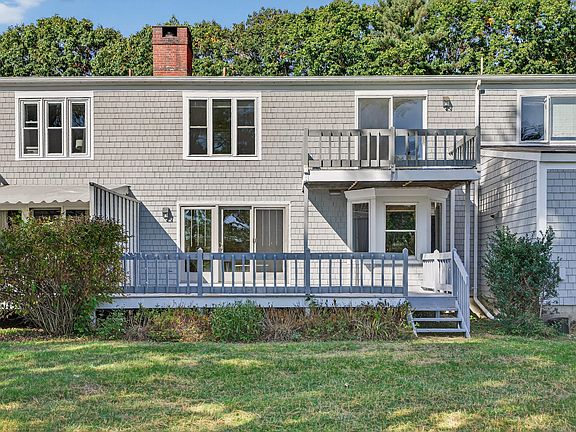 INCREDIBLE VALUE! This charming condo in Blueberry Cove, an association nestled along the shores of the Royal River in the heart of Yarmouth, presents an exceptional investment opportunity. Thoughtfully maintained, this two-bedroom, two-bath residence overlooks peaceful green space, providing both privacy and tranquility. With hardwood floors and a classic layout, the main level features a kitchen with generous custom cabinetry, a dining room, and a living room with a fireplace and glass sliders leading to a deck. The upper level has two bedrooms, including a primary suite with a private balcony, laundry closet, and ample storage. The partially finished lower level offers flexible space, ideal for a home office or gym. Residents enjoy outstanding association amenities, including a pool, tennis/pickleball courts, and proximity to the nearby scenic Royal River Water Trail and Spear Farm Estuary Preserve. Located just minutes from Yarmouth Village, shops, restaurants, and marinas, and only twenty minutes to Portland, this home delivers comfort, convenience, and lasting value in a highly desirable community.