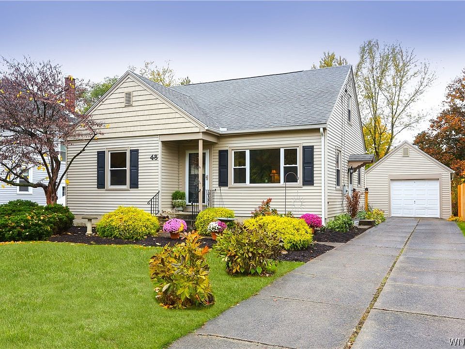 Enjoy all the amenities of Village of Hamburg living. Lovely cape cod with 3 bedrooms and 1 bath, large living room /dining room and beautiful updated kitchen. Large 2nd floor bedroom could also be a great office or guest space. New deck oversees a large fenced in back yard with gorgeous perennial gardens. Hardwood floors throughout with light filled rooms. Just move in!