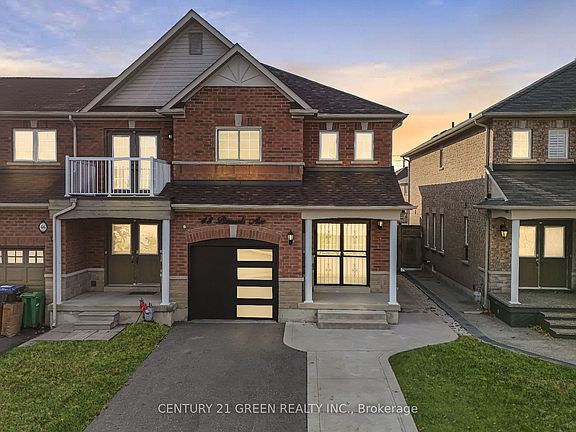 !!Absolute Showstopper!! Don't Miss This Immaculate END-UNIT Townhome - More Like a Semi-Detached Offering nearly 1,800 Sq ft of Above Grade Living Space. This Turnkey Home comes with Stress Free Living loaded with every Upgrade and Feature you could think of. With Almost $90,000 Invested, Every detail reflects quality and craftsmanship at its finest. The main floor opens into a bright open-concept living with a spacious great room enhanced with smooth ceilings and pot lights. Kitchen comes equipped with High End Smart-Technology S/S Appliances, Quartz counters, Ceramic tile, modern backsplash & water filtration system. Breakfast area walkout to a private concrete backyard perfect for family gatherings and guests entertainment. Completely carpet-free with brand-new Engineered Hardwood flooring on both levels & fresh paint throughout with an upgraded stylish Iron Spindles Staircase. Double-door Primary Bedroom showcases a Walk-In Closet and a Spa-Like Ensuite with glass door standing shower upgraded with premium porcelain floor and wall tile. All bathrooms upgraded with Quartz Counter, Under-Mount sink and Black Faucets. Added convenience and Extra Parking with an extended concrete driveway and paved sidewalk. Additional Highlights Include Central Vacuum, Brand New Garage door, Blackout Blinds, Security Metal Front Gate, Security cameras and more. Area features parks, schools, golf course, public transit. Close proximity to Hwy 410, Trinity Common Mall, Heart Lake Conservation & major plazas. Ideal for first-time buyers, families, Investors, Commuters & nature lovers. Truly a "SEE IT TO BELIEVE IT" Home - FEELS LIKE A BRAND NEW BUILT. Book your showing and experience the living This Home and Neighbourhood has to offer. **Kindly See Upgrade & Feature Sheet Attached In the photos.**