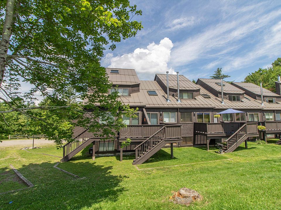 This is a wonderful unit with a front row seat to the Mt. Step off your deck and jump on the chairlift for a great day on the slopes or downhill mt. biking. The view looks like you are holding the Mt. in your hands. This is an end unit so you have a private deck and several additional windows.  These owners have utilized what was a closed in space above the Master bedroom levl with bath and turned it into a hot tub room with sky lights, small fridge and sink for entertaining.  The Unit was fully renovated with a custom maple kitchen, sub zero refrigerator and Jennaire  Range.  The fireplace was redone and the living-room/dining area has hardwood floors.  The main floor bath is a half bath with laundry. On the lower walkout basement level are 2 bedrooms and a full bath. The slider in the living room to the deck and windows were all replaced over the past 10 years.  Please see the list of improvements in the Document section of the tool bar above the listing.