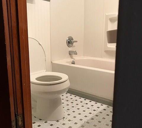 Bathroom has new showerhead.