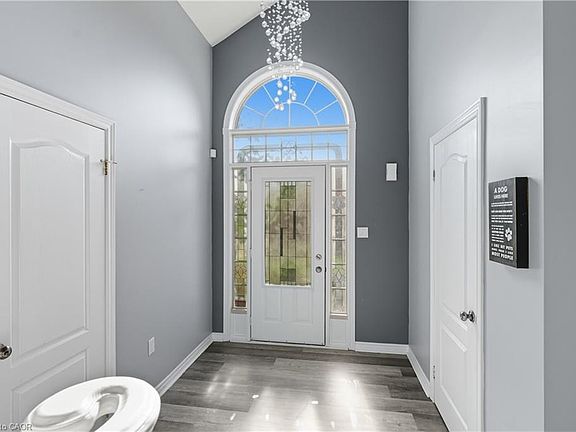 Welcome to this beautifully maintained 2-storey home in the highly sought after Meadowlands community of Ancaster. Offering approximately 2,200 sq. ft. of finished living space on all 3 levels, this 3+1 bedroom home is nestled on a quiet street in a mature, family friendly neighborhood. From the moment you arrive, you'll be impressed by the oversized driveway and walkway that lead to a grand entrance and spacious foyer. The open concept main floor features soaring cathedral ceilings, luxurious vinyl flooring, California shutters, and an abundance of natural light, creating a warm and inviting atmosphere ideal for everyday living or entertaining. The bright kitchen and dining area offer seamless access to a private backyard oasis complete with a stamped concrete covered patio a gas BBQ hookup, and no rear neighbors for added privacy. The in-ground sprinkler system keeps everything lush with minimal effort. Upstairs, the generous primary suite includes a walk-in closet and a spa inspired ensuite with a soaker tub and separate shower. Two additional spacious bedrooms complete the upper level, perfect for family or guests. The finished lower level adds even more versatility with a cozy recreation room ideal for movie nights or watching the game and an additional bedroom or office space. Additional features include a double car garage with inside entry, parking for four vehicles Located close to schools, parks, shopping, major highways, and all essential amenities this home truly offers the best of Ancaster living. Don't miss your chance to own one of the best values in the area!