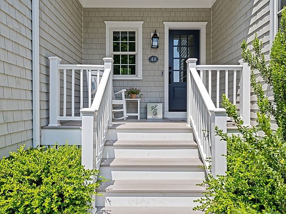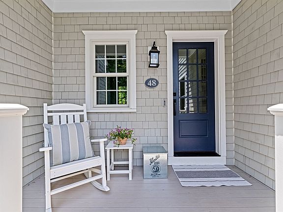 Tucked back off the road, lined with driveway lamp posts, sits this shingled cape home newly built in 2020. Step inside this 4BD 3.5BA home to find an open kitchen into both the living and dining areas, creating an inviting flow on the first floor. Kitchen includes a large 8ft center island, a suite of GE Café stainless steel appliances, and a wet bar with beverage refrigerator. The first-floor primary suite includes a walk-in closet and private ensuite bath with separate shower and soaking tub, vaulted ceilings and is drenched with natural sunlight. The second floor offers 3 guest bedrooms, a full guest bathroom with tub and shower, and laundry room. Off the mudroom on the second floor, you’ll find an additional bonus space with a full bath and shower, perfect for a private guest space, office, or recreation room. Outside, you'll find an oversized patio with garden lights and an outdoor shower. Centrally located 1 mile to the beach, the new elementary school, and nearby North Scituate