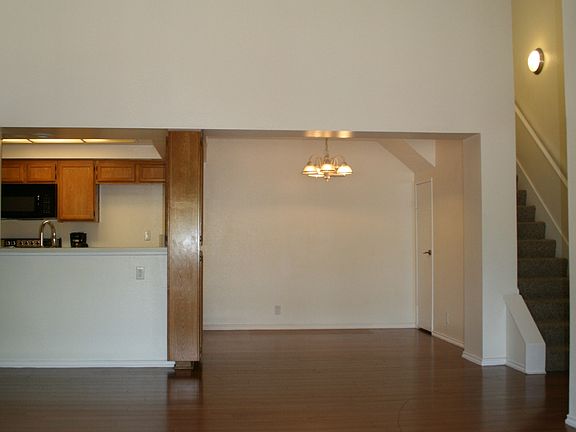 Upgraded 2 bedroom condominium. Upstairs unit. Wood style flooring in entry, living room, hall, dining area and kitchen. Sliding doors off living room opens to a large covered patio. (Patio has laundry room for full sized washer and dryer.) Remodeled kitchen with new microwave, stainless steel sink, dishwasher, range and oven. (no fridge) Full bath off the main hall which also opens to one of the bedrooms. Second bedroom has a 3/4 bath and new double sink vanity. Both bedrooms are carpeted. Large upstairs loft with 1/2 bath. Central heat and air conditioning. Garage and guest parking. Complex has a pool and spa. NO PETS. NO SMOKING. Very nice complex. Rent $1,350.00. Security Deposit $1,450.00. Total Move-in $2,800.00. Located south of the 60 Fwy, in on Rio Rancho.
