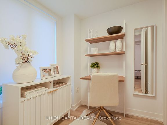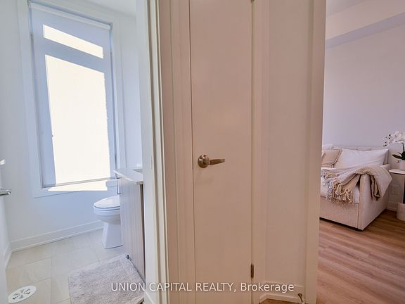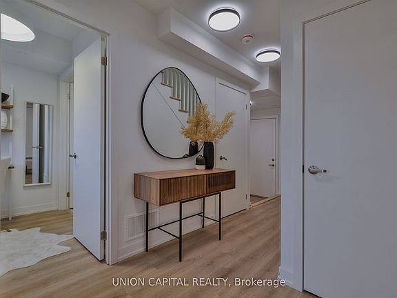 Welcome to Bartley Towns. This beautiful end-unit townhouse is perfectly positioned by the soon-to-be upgraded Bartley Park. This family-friendly home is bathed in natural light that accentuates its 9-foot smooth ceilings. Upon entry, a versatile den with a large window and a full ensuite washroom provides the ideal setup for a home office. The interior boasts a sleek modern kitchen with quartz countertops, extended cabinetry, and premium finishes throughout. Enjoy exceptional outdoor living with expansive southwest-facing terraces offering captivating views of the downtown skyline. A private 14-foot-tall ground-floor garage offers ample space and is perfectly suited for a car lift or to build your own storage mezzanine. Just steps from the Eglinton Crosstown LRT and a walking minutes to Eglinton Square Shopping Centre, Walmart, Costco, Movie Theatre and the coming Golden Mile Shopping District and Park.