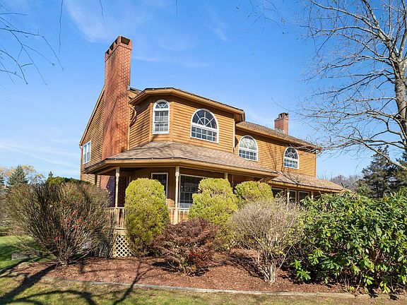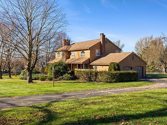 Welcome to this charming farmhouse-style Colonial set on a picturesque 1-acre lot in Tolland. Offering 2,481 sq. ft., 3 beds, 2.1 baths, and a 2-car garage, this home blends classic New England character with a wonderful, functional layout. A wraparound porch welcomes you into the foyer. The spacious eat-in kitchen has a wall of windows framing country views and overlooking the fenced yard. The FR features built-ins and a pellet stove-perfect for keeping warm on chilly New England days. Enjoy hosting in the formal DR, while the LR offers a quiet retreat with its own FP. French doors and H/W floors add charm & warmth on the main level. Convenience abounds with a 1st floor laundry room and mudroom. The primary bedroom suite boasts another FP, a large w/in closet, and a f/bath with whirlpool tub. Two generously sized bedrooms and a 2nd f/bath complete the upper level. The w/o LL provides even more living space with 2 finished rooms-ideal for a home office, rec room, or hobby space-plus unfinished areas perfect for storage or future expansion. Additional features include a brand-new oil tank, arch. roof, cedar siding, a fenced backyard area with additional open yard space, a deck with built-in seating off the kitchen, well/septic and endless potential to make this home truly shine with a bit of TLC. This home offers character, space, and an incredible opportunity to make it your own. Just minutes to Shenipsit Lake, you'll enjoy access to nature, hiking, and peaceful surroundings. This home also has lightening rods on the roof, French drains around the house, gutters are connected to the drain, attic fan doesn't work the wire is broken. This is an AS IS sale.