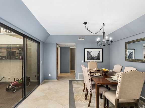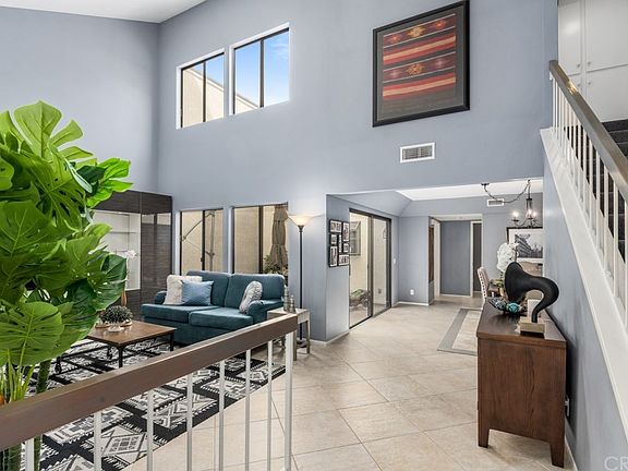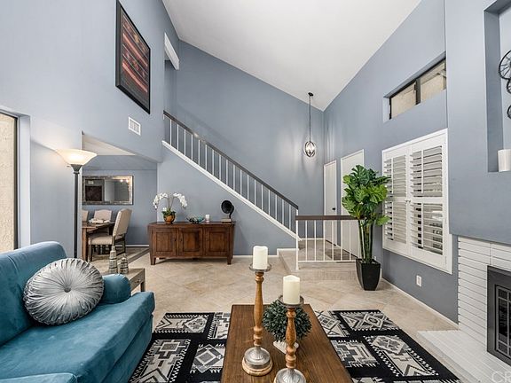 Welcome to a fabulous LIGHT & BRIGHT, END-UNIT, MOVE-IN READY condo. The floorplan offers soaring ceilings, loads of windows streaming in natural light, spacious living areas and a RARE DIRECT ACCESS OVERSIZED 2-CAR GARAGE. The spacious living room has a charming fireplace and gorgeous sleek entertainment center with lighting and loads of storage. The large dining room with trayed ceiling overlooks the beautiful private courtyard creating an ideal space for indoor/outdoor living. Remodeled and upgraded kitchen includes granite countertops, stainless steel appliances, white cabinetry, a bay window, recessed lighting and even a wine refrigerator. Upstairs is a very large master bedroom with soaring ceilings, 3 large closets and an adjoining remodeled full bath with rain showerhead, seamless glass enclosure, dual vanities and newer cabinetry. The second upstairs bedroom beams with natural light and has access to the shared bathroom and a private sundeck. Other upgrades include neutrally painted interiors, upgraded carpeting, plantation shutters, dual pane windows, upgraded hardware and custom lighting throughout. Unusually large garage has tons of storage. Fantastic Woodbridge resort-style amenities include two lakes with sand beach lagoons, boating & fishing, 20 pools, 20+ tennis courts, playgrounds, fitness course, and a multitude of family-friendly activities. No Mello Roos & easy walking distance to award-winning schools. Perfect starter home or investor property!