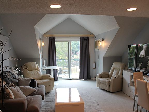 Rivergreen is a short walk to the new Timber Town Chair Lift at the South Peak resort side of Loon Mountain. This two floor penthouse condo occupies the 4th and 5th story of the building. An end unit featuring privacy, concrete construction quiet design, and incredible mountain views from your deck, Your Hot tub, Living Room and Primary suite. Common area amenities offer indoor pool, Great Gathering Room (with fireplace) fitness area, hot tub, and laundry facilities. Almost forgot a shuttle bus to the ski slopes will allow you to ride to the lift ski to the escape route trail, and then walk home when you are done for the day.