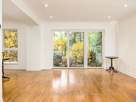 Looking for the space and comfort of a detached home - without the upkeep? This rare end-unit townhome in sought-after Bayview Mills delivers just that. Nearly 2,000 sq. ft. of stylish living with 4 bedrooms, 3 baths, and a full, finished basement gives you room to live, work, and play. The renovated eat-in kitchen, with stone counters, stainless-steel appliances, and a true walk-in pantry, opens into the dining room - perfect for family dinners or weekend entertaining. The bright, airy living room walks out to a private patio surrounded by mature greenery, ideal for morning coffee or relaxed evenings outdoors. Upstairs, an elegant curved staircase leads to four spacious bedrooms, including a private primary suite with 4-piece ensuite and garden views. Freshly painted throughout, with updated windows, mechanicals, and beautiful hardwood floors (and broadloom where noted). The finished basement offers a large recreation or media area, laundry/hobby room, and plenty of storage space. *A rare double garage, double driveway, and 4-car parking make this property truly stand out*. Monthly maintenance covers landscaping, snow removal, exterior upkeep, water, and access to the outdoor pool - offering an easy, low-maintenance lifestyle. Set in a quiet, established community surrounded by mature trees, and upscale homes, this well-maintained home is walking distance or a short drive to Bayview & York Mills shops, restaurants, parks, TTC, and with easy access to Hwy 401, DVP, and Bayview Village. Within the catchment for top-rated schools - Harrison PS (IB), Windfields MS, York Mills CI, Claude Watson School for the Arts, and É.S. Étienne-Brûlé. A true rare find - comfort, convenience, and pride of ownership in one of Toronto's most desirable neighbourhoods.