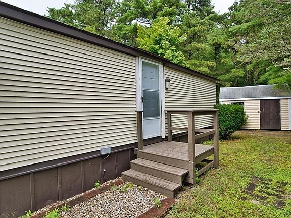 Set just inside this family friendly park, slightly backed up into the woods, is an impeccably well kept mobile, calling it's new owner! This home boasts new updates- new recessed lighting in kitchen and LR, light wood laminate flooring throughout, beautifully cared for bedroom carpets, 2 yr old hot water heater, new wall AC unit and a freshly painted 12 X 27 deck! Brand new washer/dryer set is less than 6 mo. old! Enjoy the fresh outdoors with a cool drink on the deck or take a walk to the Village park. Have furry friends? They are also welcome to take a stroll. Nearby is fishing, and swimming accessibilities as well as Edaville Theme Park and King Richard's Faire! Step into your new life in Carver; take in the small town feel and all that it encompasses!